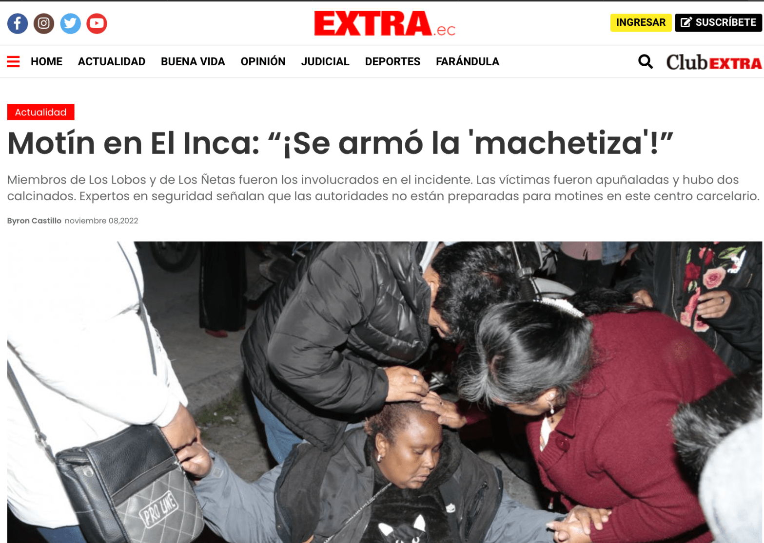 Diario EXTRA consultó a nuestro director sobre la situación de violencia en las cárceles, a propósito del último enfrentamiento en la cárcel de El Inca, en Quito.