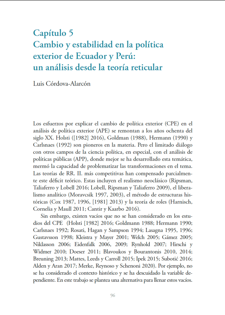Capítulo de Libro: La política exterior de los Estados latinoamericanos: enfoques, metodologías y casos. Raúl Salgado, coordinador. Quito: Editorial FLACSO-Ecuador, pp. 96-137