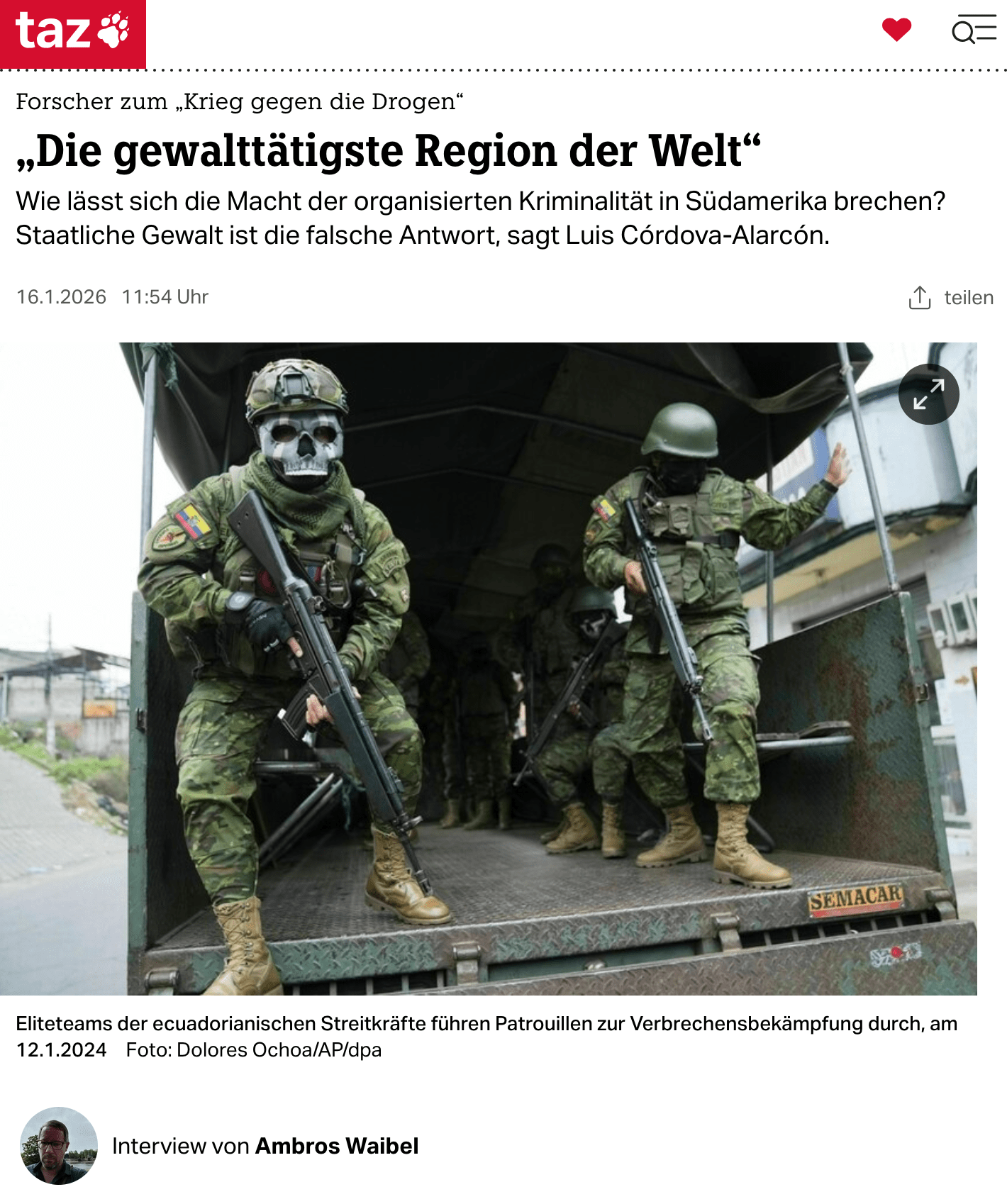 Wie lässt sich die Macht der organisierten Kriminalität in Südamerika brechen? Staatliche Gewalt ist die falsche Antwort, sagt Luis Córdova-Alarcón.