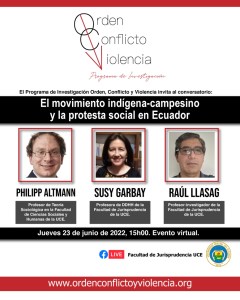 - El movimiento indígena-campesino y la protesta social en Ecuador [EVENTO]Este jueves 23 de junio de 2022, a las 15h00, realizaremos este conservatorio con la participación de tres destacados investigadores de la UCE. Philipp Altmann Profesor de Teoría Sociológica en la Facultad de Ciencias Sociales y Humanas de la Universidad Central del Ecuador. Doctor en Sociología por la Universidad Libre de Berlín con un trabajoSigue leyendo «El movimiento indígena-campesino y la protesta social en Ecuador [EVENTO]»