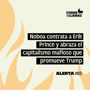 - Noboa contrata a Erik Prince y abraza el capitalismo mafioso que promueve Trump¿Qué es lo nuevo? El 18 de julio del 2025 Erik Prince llegó al Ecuador para iniciar su trabajo como contratista de seguridad para el gobierno de Daniel Noboa (EFE, 2025). En marzo, durante su primera visita al Ecuador, el presidente Noboa habló de una “alianza estratégica” con Prince para enfrentar al “narcoterrorismo” (Primicias, 2025). Luego,Sigue leyendo «Noboa contrata a Erik Prince y abraza el capitalismo mafioso que promueve Trump»